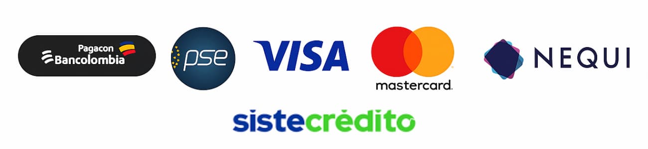 Aceptamos pagos con tarjeta crédito y débito, Sistecrédito, Nequi, Daviplata, transferencias y pago contra entrega.