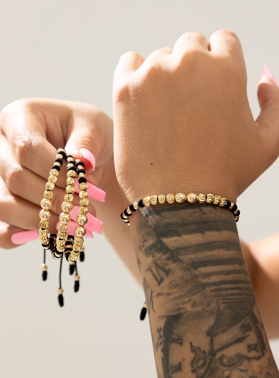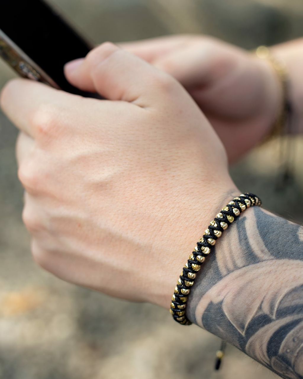 Manillas tejidas con hilo Terlenka, elaboradas con balines de oro laminado de 18...