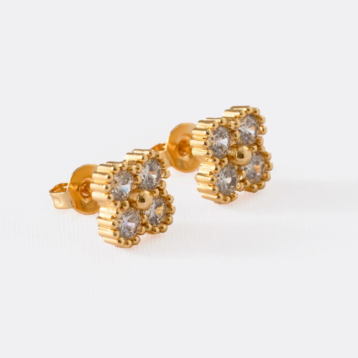 Aretes Clover Motif Trébol Cristal – Oro Laminado 18K | OM JOYERÍA