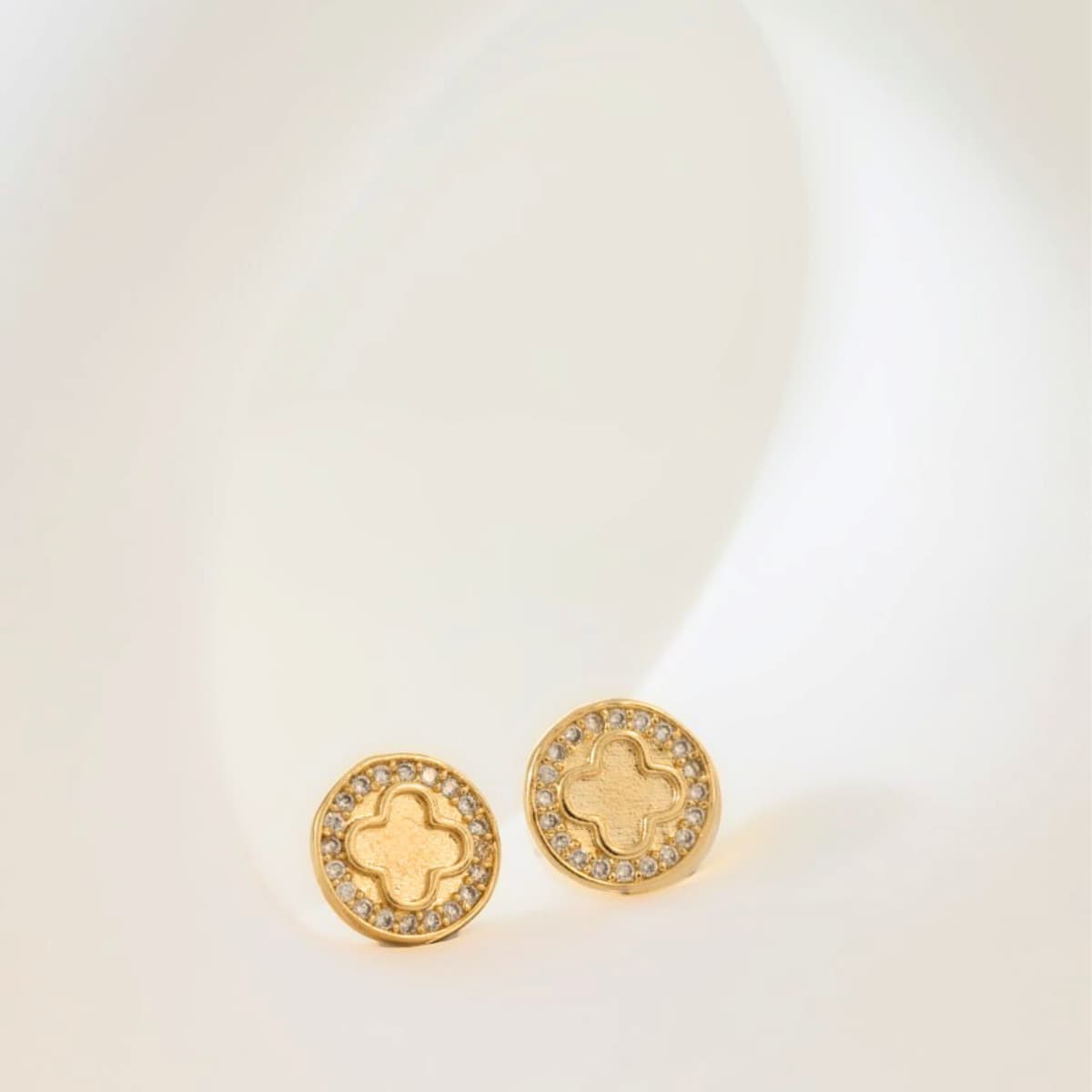 Aretes Clover Redondo Circonias 1 cm – Oro Laminado 18K | OM JOYERÍA