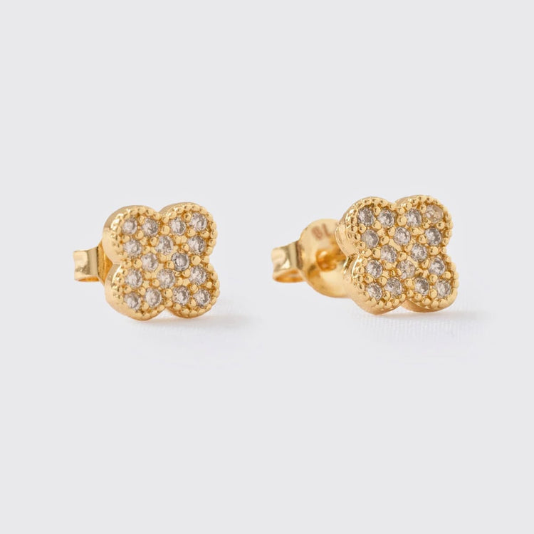 Aretes Trébol Circonias 7 mm – Oro Laminado 18K | OM JOYERÍA