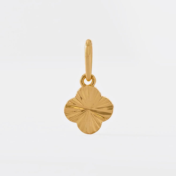 El Dije Clover Sol destaca por su diseño minimalista y elegante inspirado en el trébol de cuatro hojas, símbolo de buena fortuna y equilibrio. Su textura en relieve con acabado brillante refleja la luz de manera sutil, ideal para quienes buscan un accesorio clásico con un toque distintivo.