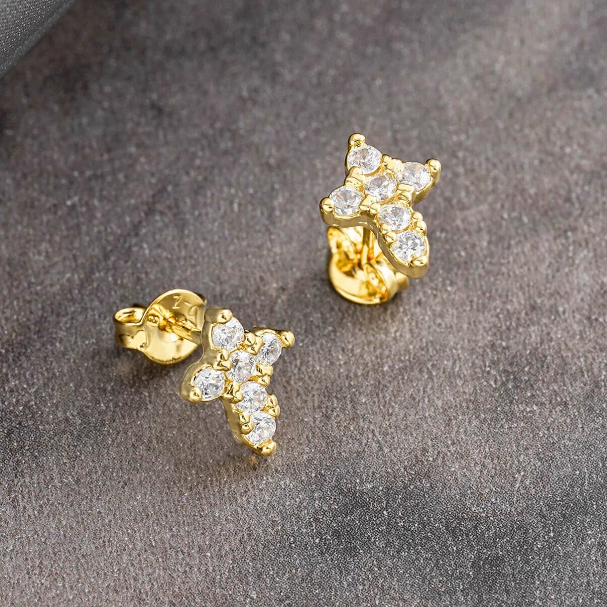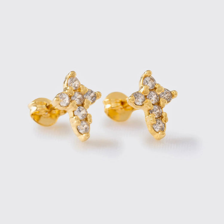 Aretes Topos Cruz Circonias Unisex – Oro Laminado 18K | OM JOYERÍA